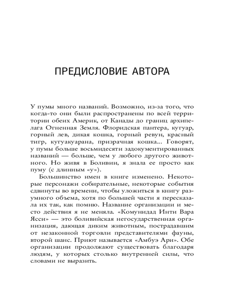 Годы с пумой. Как одна кошка изменила мою жизньВ данный момент этот товар отсутствует в продаже. Возможно, у нас найдется аналогичный или похожий товар здесь. Серия: Проект TRUESTORY. Книги, которые вдохновляют Что делать, если ты потерял себя и сбился с жизненного пути? Взять отпуск? Сменить работу? Сходить с друзьями в бар? Героиня книги и по совместительству ее автор Лора попробовала все. Но спасение нашла в далеком маленьким заповеднике в Боливии среди жары, духоты, москитов, наводнений и пожаров. А помогла ей такая же потерянная и запуганная пума... И еще множество страдающих животных и запутавшихся людей. |