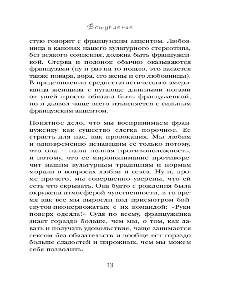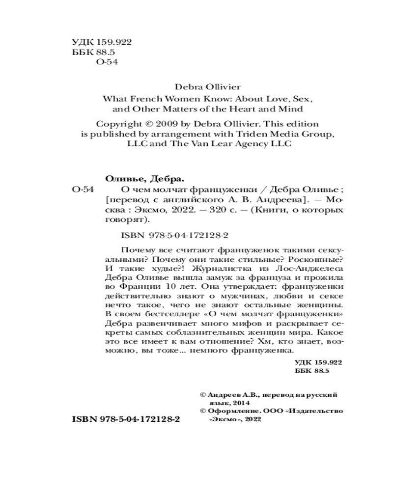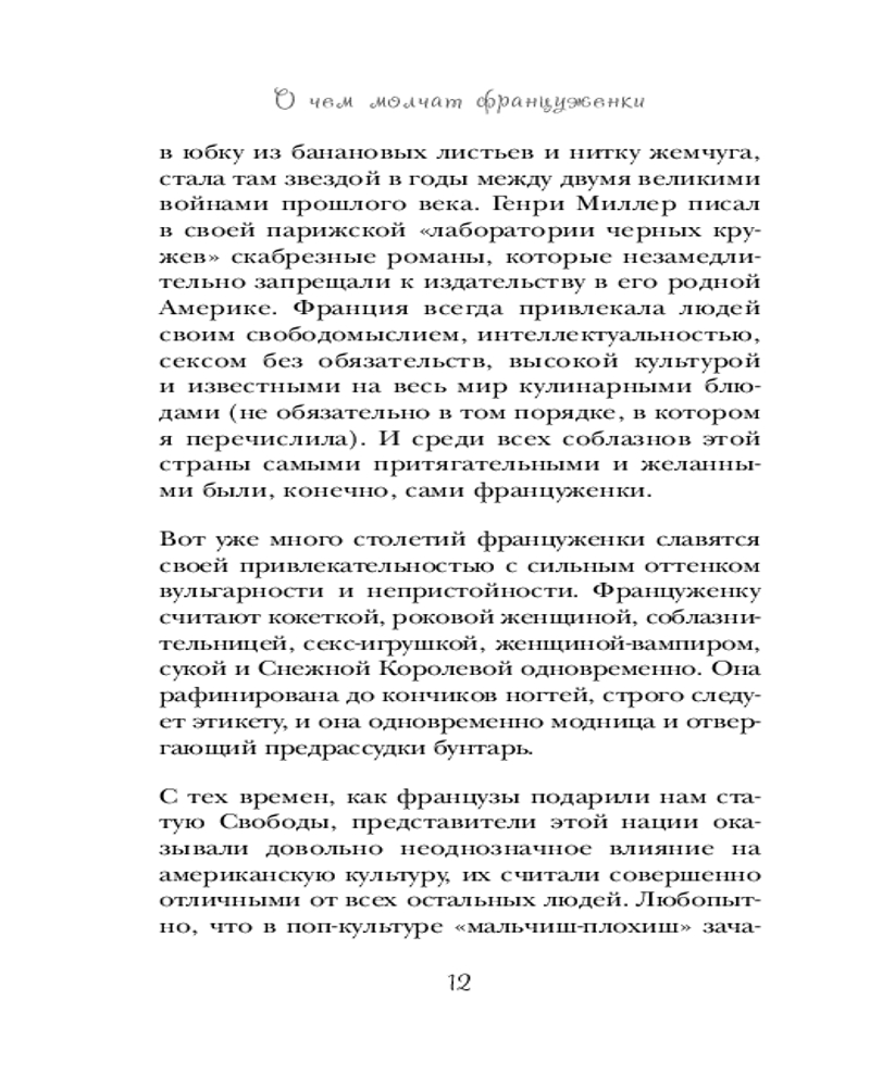 О чем молчат француженкиВ данный момент этот товар отсутствует в продаже. Возможно, у нас найдется аналогичный или похожий товар здесь. Серия: Книги, о которых говорят Яркие, чувственные и манящие — такую славу заработали француженки. Как им удается становиться центром всеобщего внимания и получать то, чего они хотят? Журналистка из Лос-Анджелеса Дебра Оливье вышла замуж за француза и прожила во Франции 10 лет. Она утверждает: француженки действительно знают о мужчинах, любви и сексе нечто такое, чего не знают остальные женщины. В своем бестселлере «О чем молчат француженки» Дебра развенчивает мифы и раскрывает секреты самых соблазнительных женщин мира. В этой книге вы встретите много полезных советов на каждый день. |