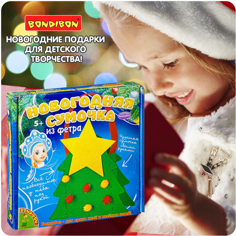 Bondibon Набор для творчества «Новогодняя сумочка из фетра. Ёлочка»В данный момент этот товар отсутствует в продаже. Возможно, у нас найдется аналогичный или похожий товар здесь. Серия: Ручная работа Набор для творчества — создание оригинального подарка своими руками. В комплекте есть всё необходимое, чтобы сшить и украсить новогоднюю сумочку. А именно: заготовки из фетра, игла, нити мулине, аксессуары для украшения, клей. |