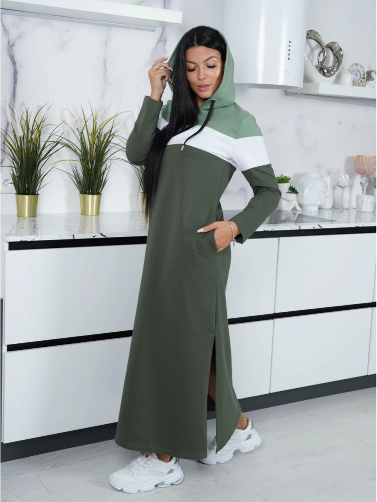 Платье-худи просто огнище!!!! Качество ткани, пошив очень качественные. я ношу 54-56 взяла 62 чтоб прям свободно было, за счет этого оно немного длинноватое, нужно немного подрезать. Если бы взяла 60, было бы идеально. Брала голубое-цвет очень освежает.