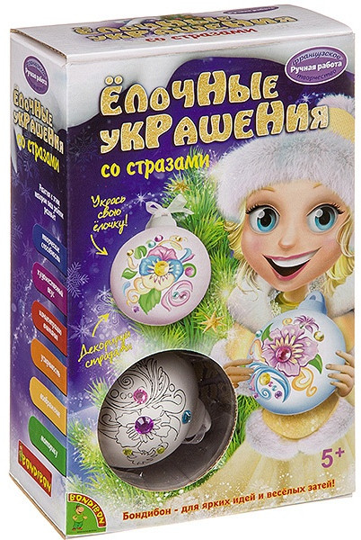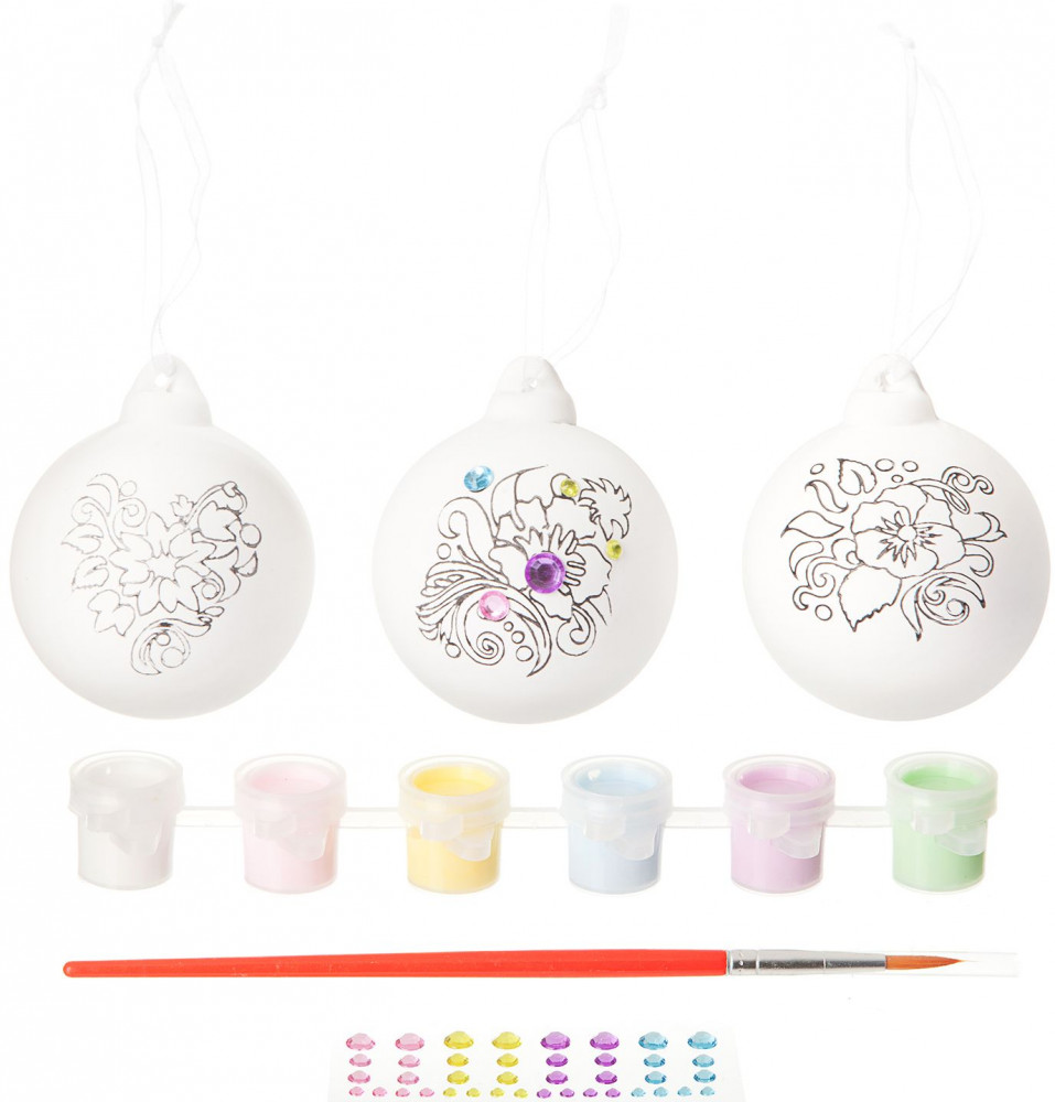 Bondibon Набор для творчества «Ёлочные украшения со стразами»В данный момент этот товар отсутствует в продаже. Возможно, у нас найдется аналогичный или похожий товар здесь. Серия: Ручная работа Набор для творчества «Елочные украшения» поможет создать новогодние игрушки своими руками. В комплект входят 3 елочных шара, которые рекомендуется раскрасить при помощи красок и кисточки, а затем украсить стразами. Можно проявить всю свою фантазию, создавая оригинальные узоры на игрушках. Новогодние шары, сделанные своими руками, послужат отличным украшением для елки и создадут праздничное настроение |