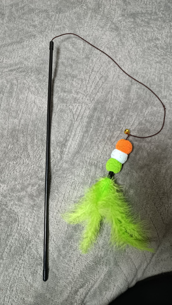 Хорошая игрушка для кошки. Длина удочки (палки) 40 см. Первые три дня активного использования- все перья на месте)
