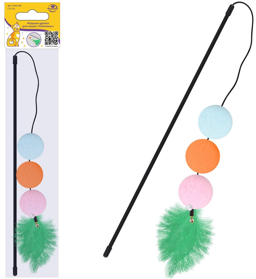 Мультидом Трейдинг Игрушка-удочка для кошек «Помпоны»-20% +34 лёгкая привлекает кошку короткая нить недолговечность