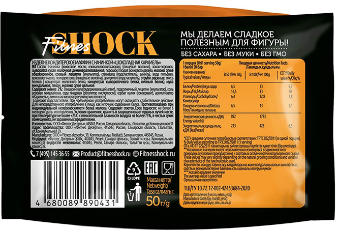 FitnesShock Маффин протеиновый с начинкой «Шоколадная карамель»