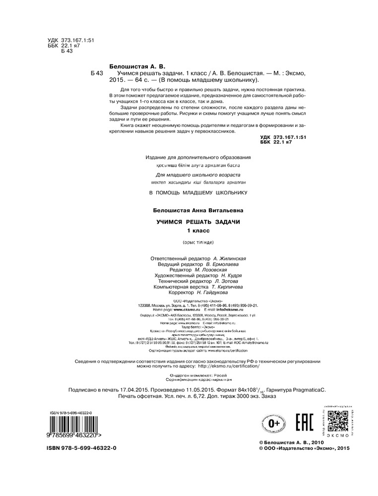 | Учимся решать задачи. 1 класс Анна Витальевна Белошистая