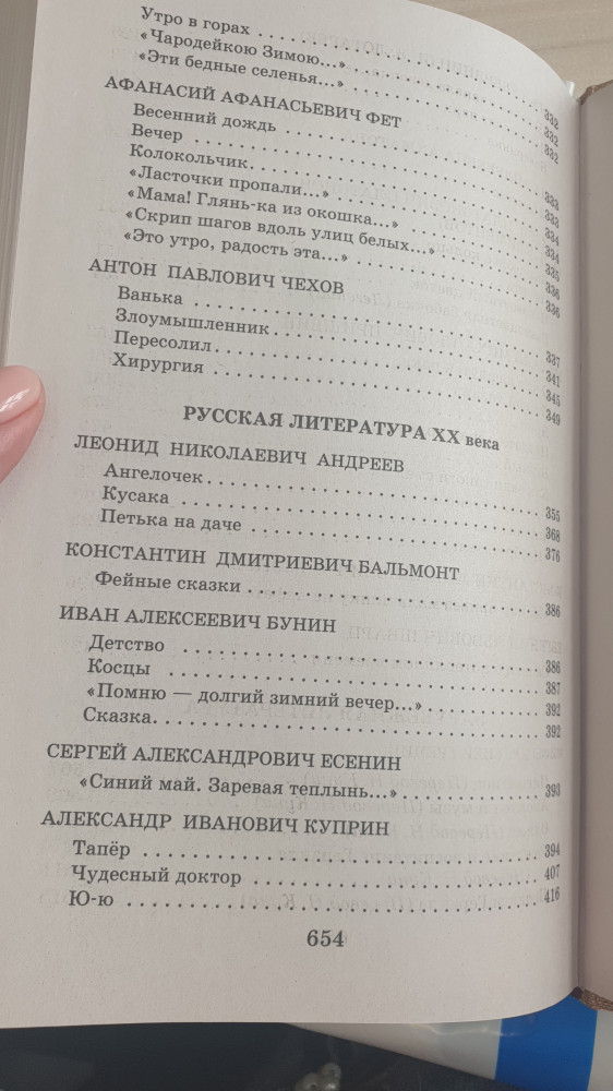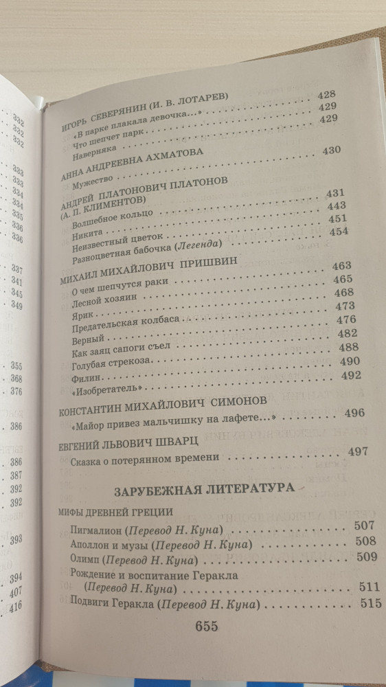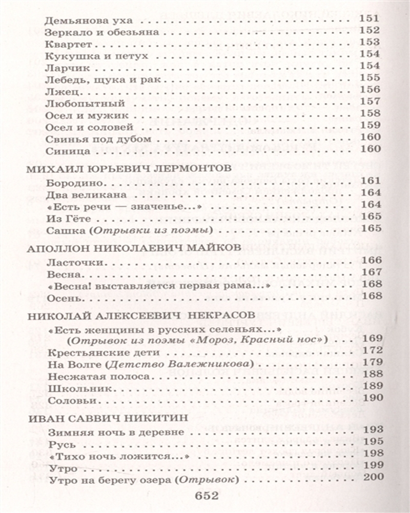 Книга представлена без оглавления, что не совсем удобно.выписали этот сборник и не пожалела. Очень много произведений и стихов. В книге есть и зарубежные авторы- Киплинг, Дефо, Гауф, Андерсен. Из классики Лермонтов, Пушкин, Чехов, Достоевский, Фет, Тютчев. Есть практически все произведения для чтения в 5 классе. Рекомендую.