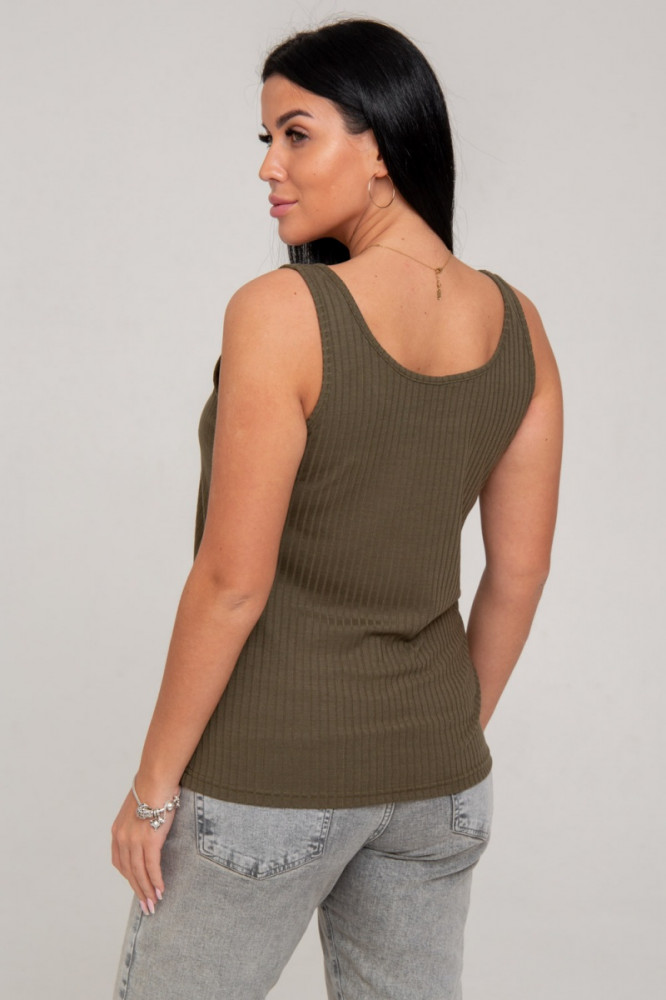Майка из вискозного полотна-лапши. Прямой силуэт. Вырез круглый, плечо с узкой бретелью, обработаны окантовкой. Низ изделия обработан швом в подгибку на плоскошовной машине.