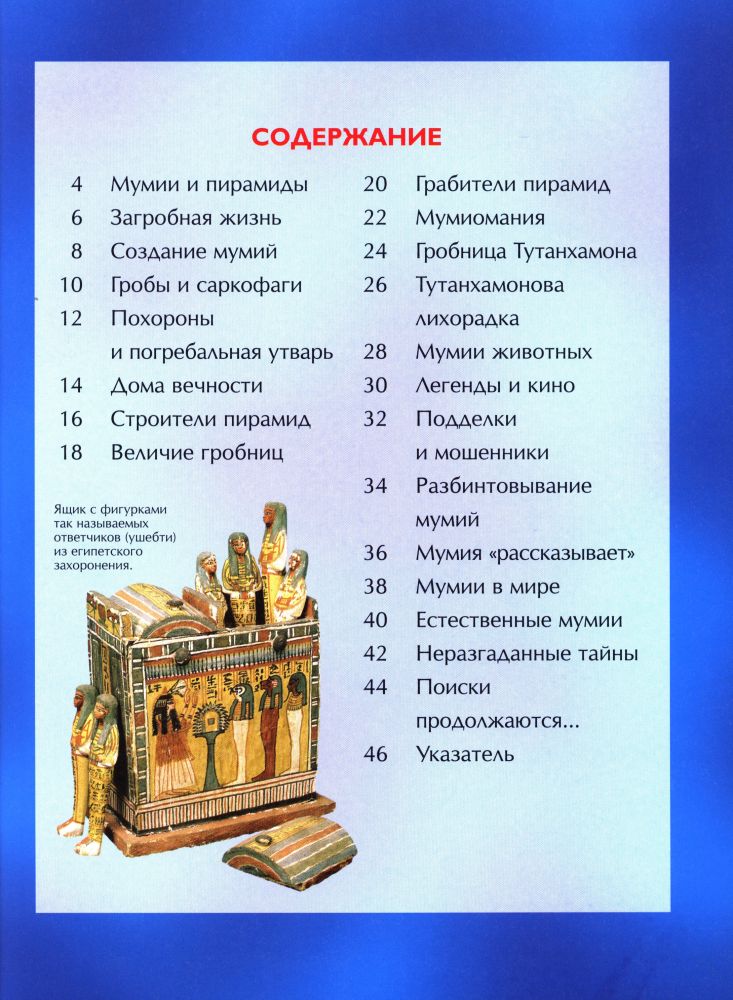 Мумии и пирамидыВ данный момент этот товар отсутствует в продаже. Возможно, у нас найдется аналогичный или похожий товар здесь. Серия: Детская энциклопедия В этой книге рассказывается о двух необычайно загадочных явлениях Древнего Египта — мумиях и пирамидах. Высказываются предположения ученых о том, каким способом изготавливали мумии и возводили гигантские пирамиды без современной техники. Увлекательный рассказ в сочетании со множеством любопытных фактов сопровождают познавательные иллюстрации. |