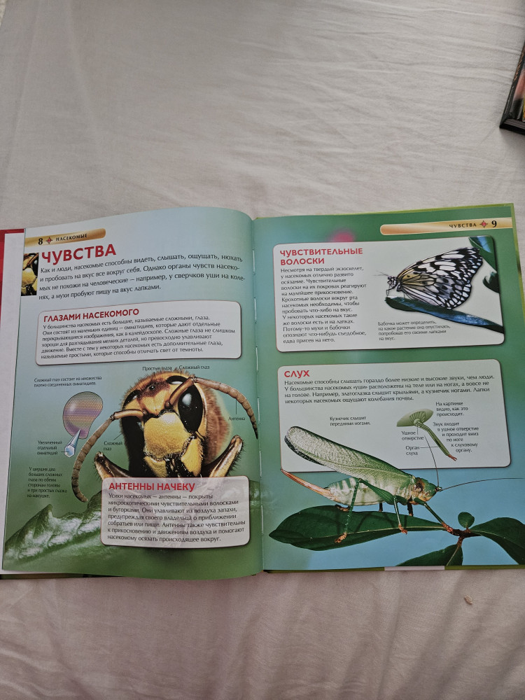 Очень интересная энциклопедия. Очень яркие и качественные фотографии насекомых, доступный для 5-летнего ребенка текст. Особенно радует цена данной серии энциклопедий.