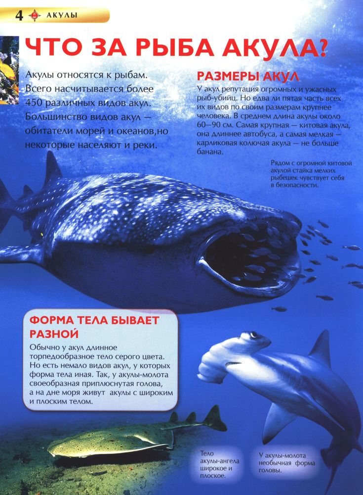Написано по принципу немного обо всем. Именно немного, кратко, но интересно, красочно. Ребёнок просил передать, что нет тигровой акулы:( Но есть белая