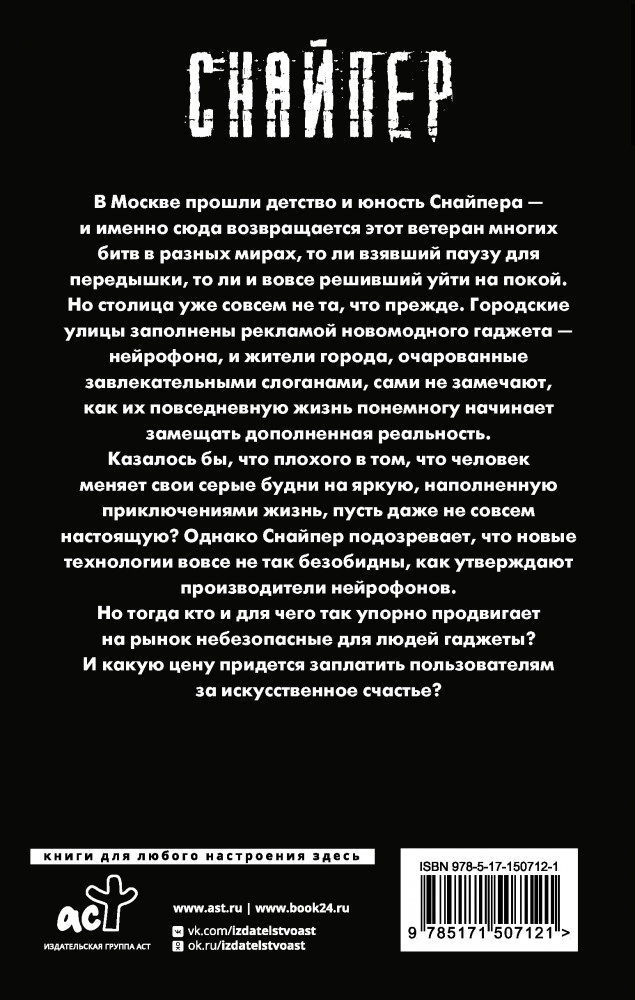 Казалось бы, что плохого в том, что человек меняет свои серые будни на яркую, наполненную приключениями жизнь, пусть даже не совсем настоящую? Однако Снайпер подозревает, что новые технологии вовсе не так безобидны, как утверждают производители нейрофонов.