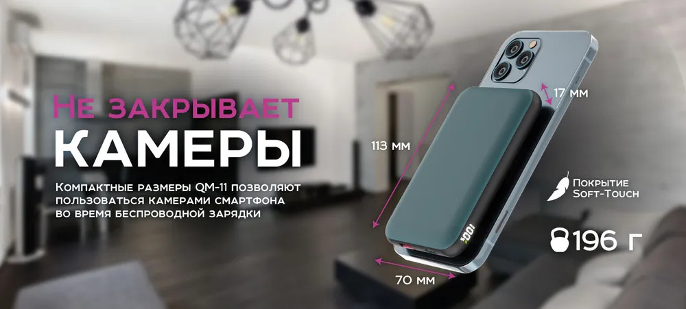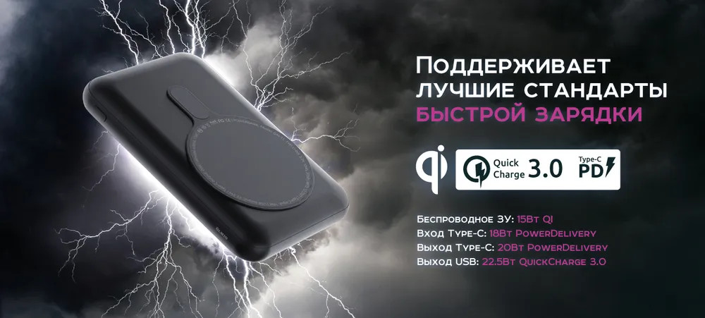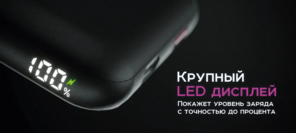 Современные разъемы позволяют пауэрбанку QM-11 поддерживать новейшие технологии быстрой зарядки — PowerDelivery и QuickCharge 3.0. Технология PowerDelivery работает как на выход, так и на вход, а значит вы сможете подзарядить портативный аккумулятор очень быстро! Крупный LED дисплей отображает заряд аккумулятора в процентах и его разрядка не станет для Вас сюрпризом