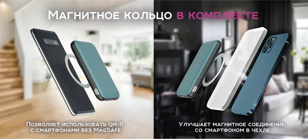 Ваш смартфон поддерживает технологию Apple MagSafe? Тогда, наш аккумулятор создан специально для Вас! Не поддерживает? Не беда, ведь мы положили в комплект магнитное кольцо, которое Можно наклеить на чехол/заднюю крышку для того, чтобы. аккумулятор магнитился и к Вашему девайсу!