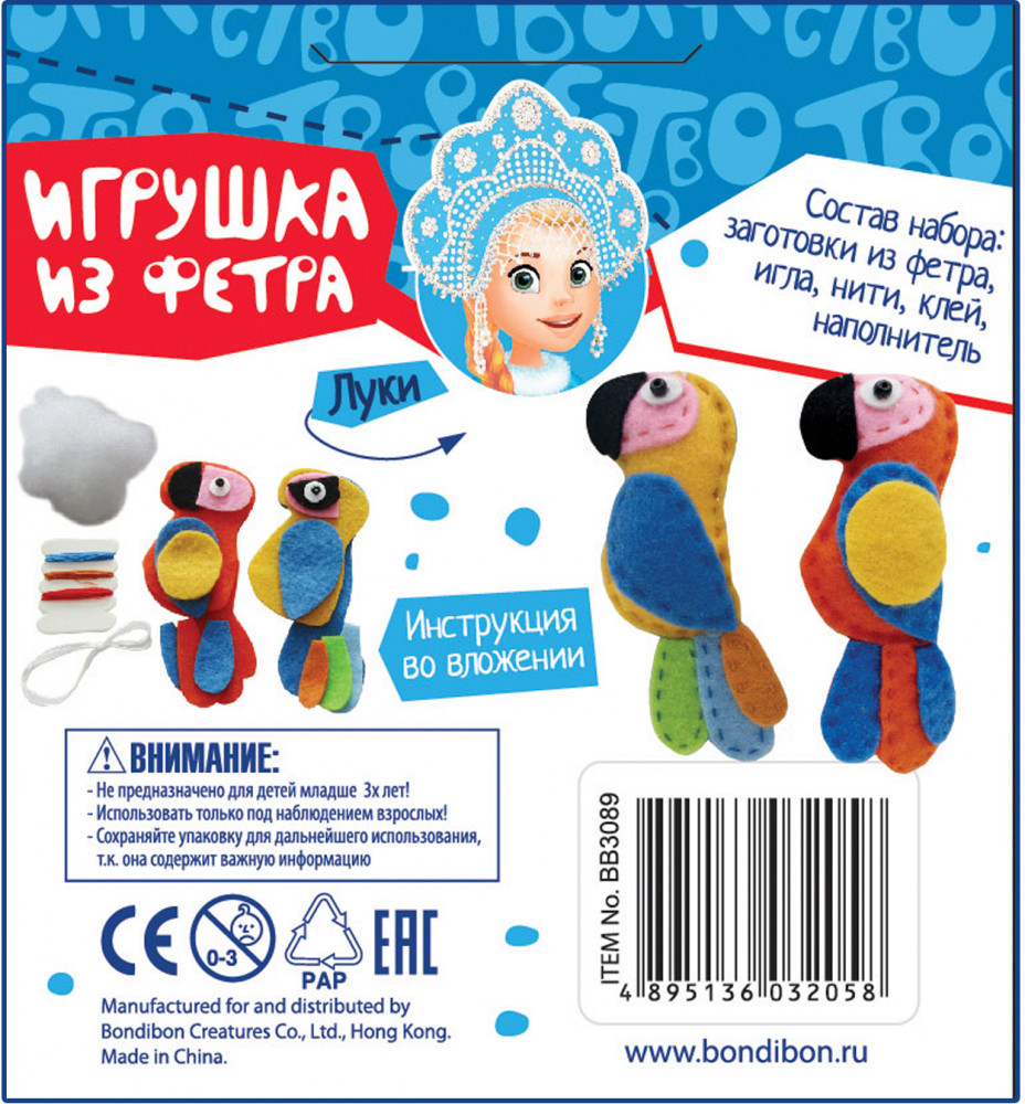 Bondibon Набор для творчества «Ёлочные украшения из фетра. Попугаи»-30%