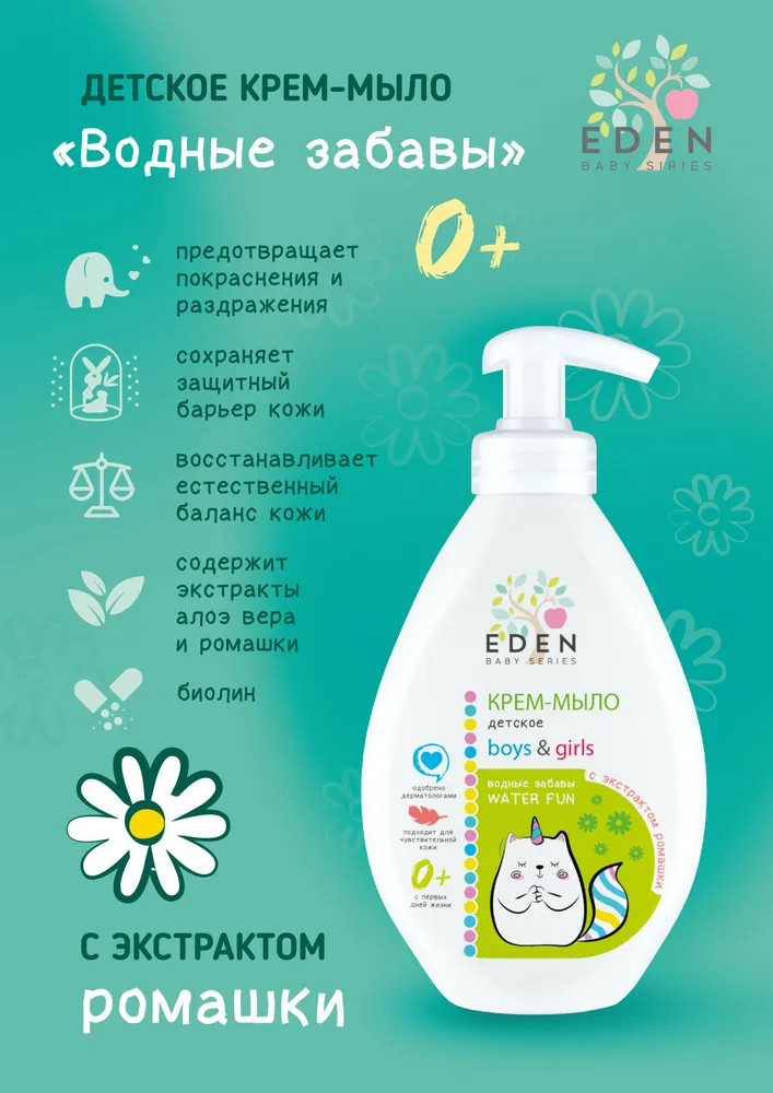 Eden cosmetics Крем-мыло для рук и тела детское «Водные забавы»В данный момент этот товар отсутствует в продаже. Возможно, у нас найдется аналогичный или похожий товар здесь. Серия: Baby Крем-мыло детское разработано для ежедневной гигиены рук и тела малышей с самого рождения. Формула мягко очищает чувствительную кожу, не раздражая и не пересушивая. |