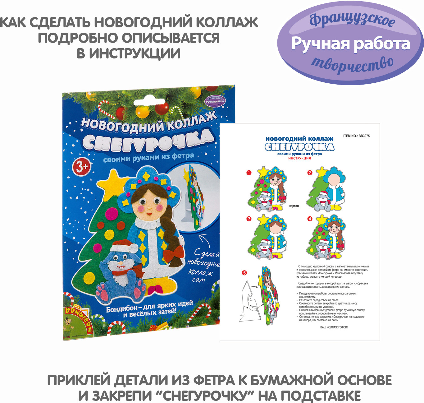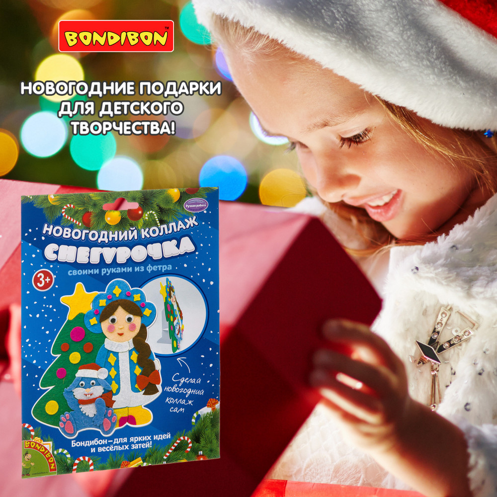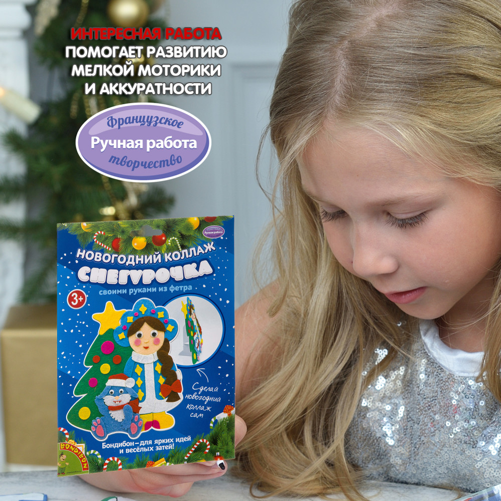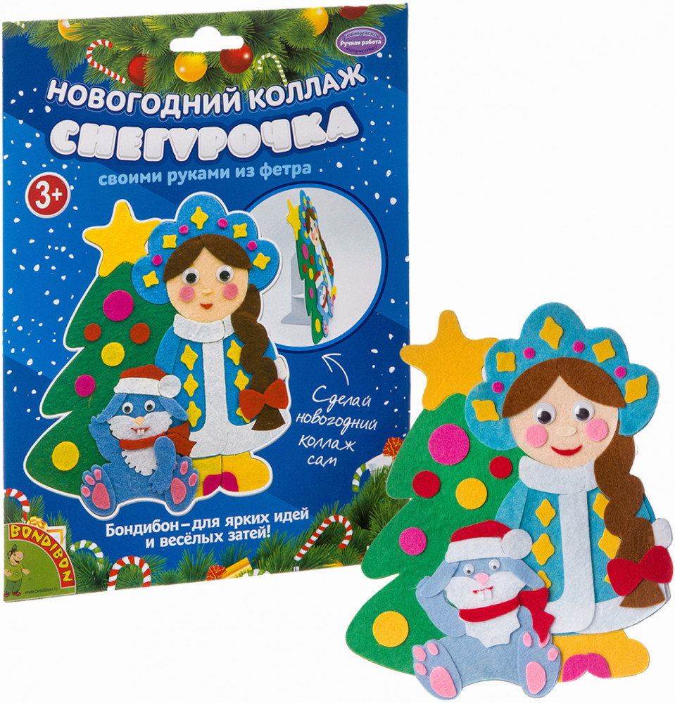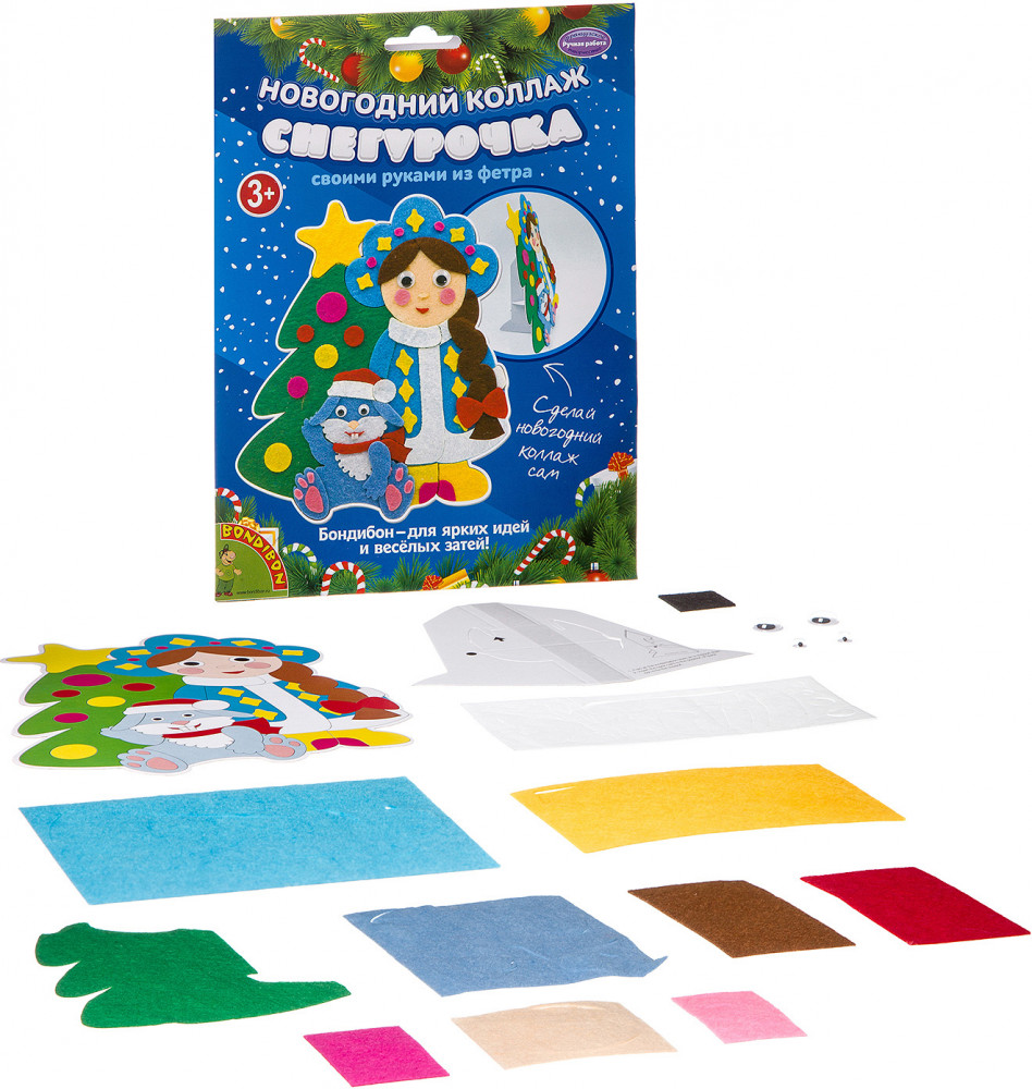 Bondibon Набор для творчества «Новогодний коллаж. Снегурочка»В данный момент этот товар отсутствует в продаже. Возможно, у нас найдется аналогичный или похожий товар здесь. Серия: Ручная работа Набор для творчества создание оригинального подарка своими руками. С помощью картонной основы с напечатанными рисунками и самоклеящихся деталей из фетра вы сможете смастерить красивый коллаж Снегурочки. Использовав подставку из набора, украсить им свой интерьер! |