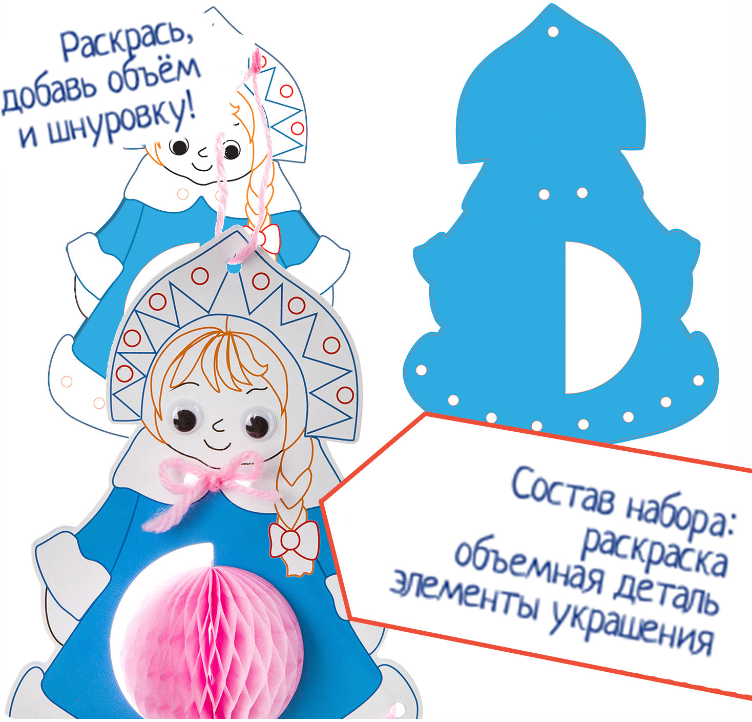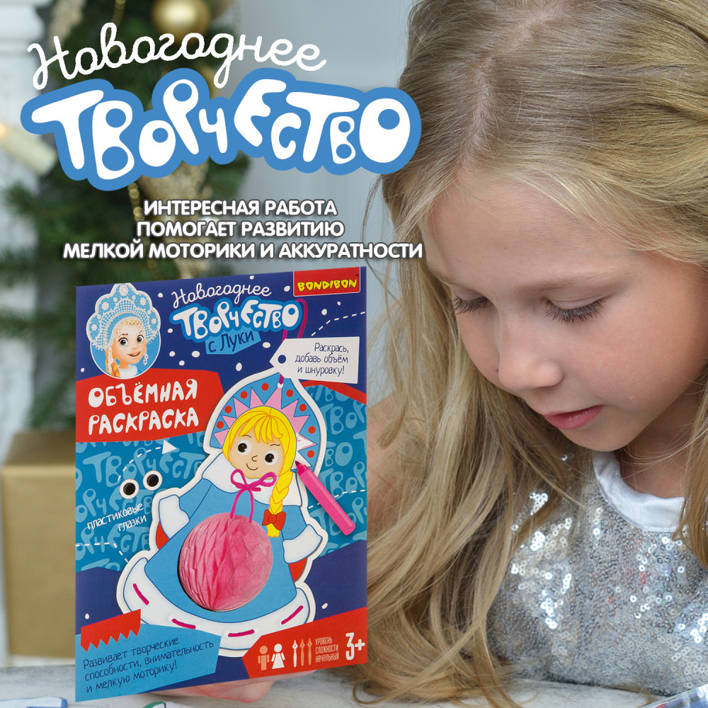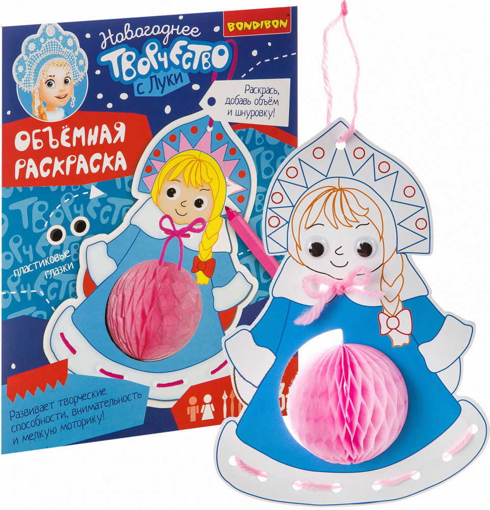 Серия: Новогоднее творчество с Луки Новогодний набор с интересной раскраской и деталями, создающими объем! Раскрась изображение, добавь объемные детальки и шнуровку. |