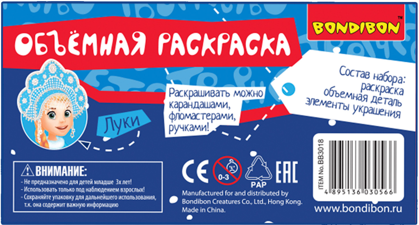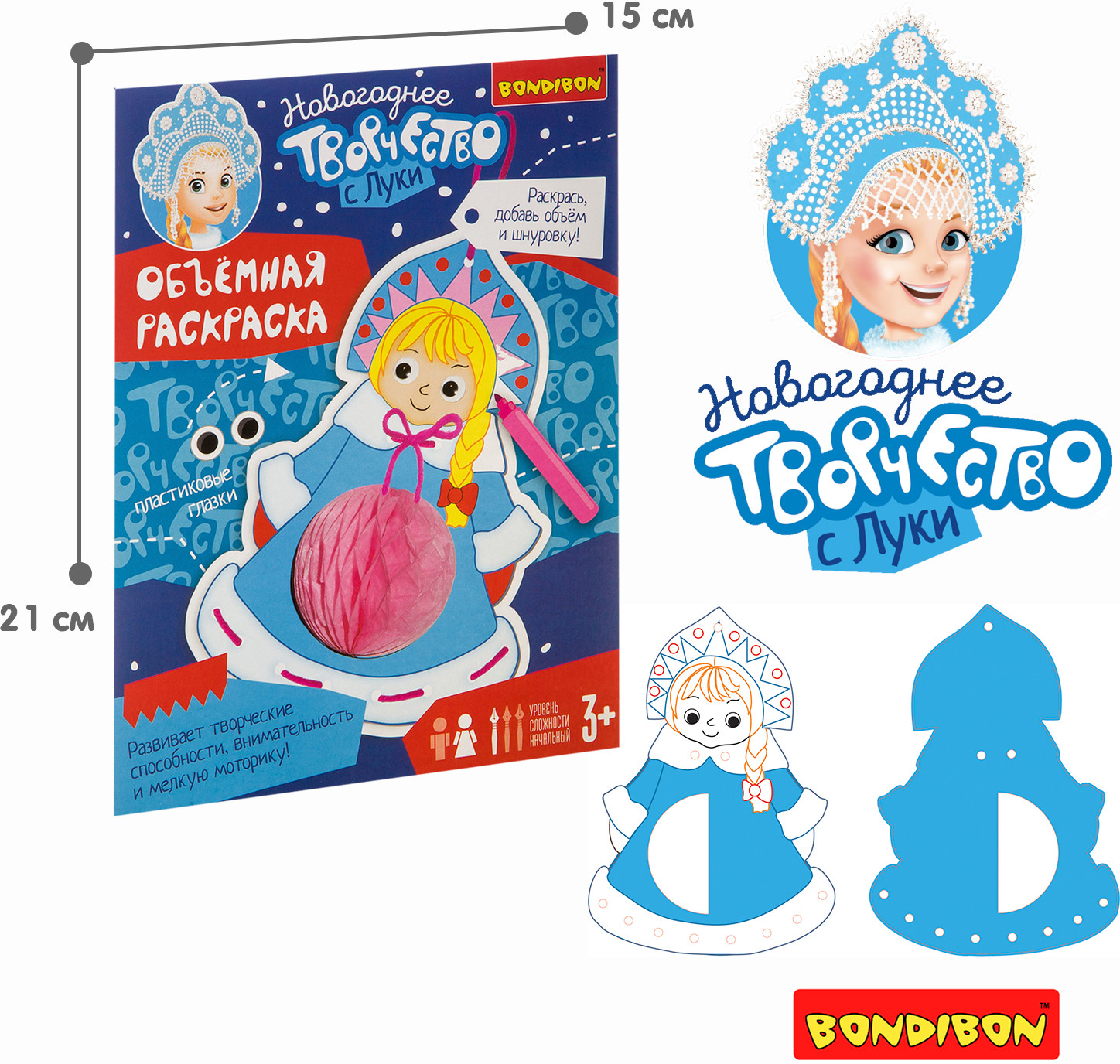 Bondibon Набор для творчества «Объемная раскраска. Снегурочка»-30%