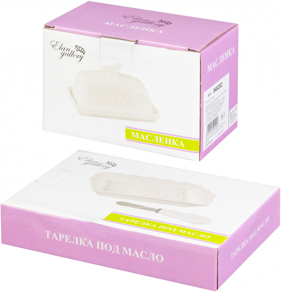 В наборе масленка, тарелка и нож, как и указано в описании.