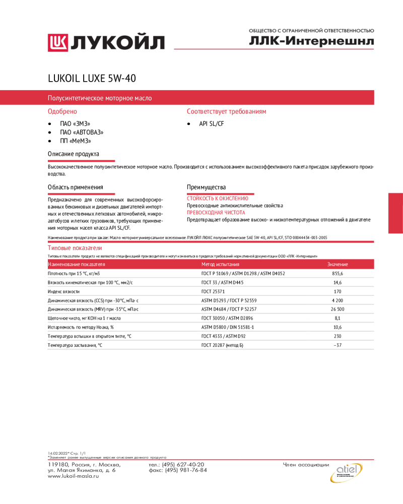 Лукойл Моторное масло Лукойл Luxe SAE 5W-40