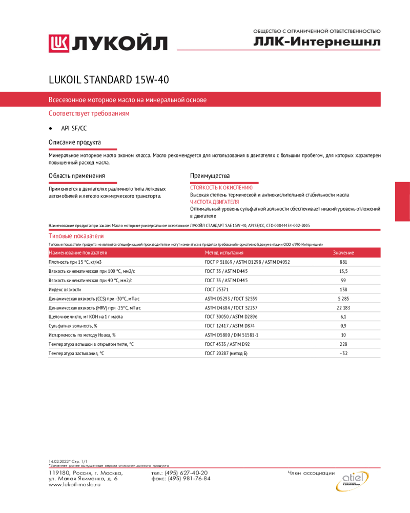 Лукойл Моторное масло Лукойл Standard 15W-40