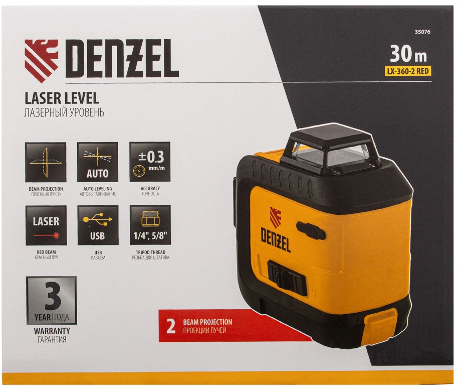 Denzel Уровень лазерный LX 360-2 RedВ данный момент этот товар отсутствует в продаже. Возможно, у нас найдется аналогичный или похожий товар здесь. Прибор профессионального уровня Denzel LX 360-2 Red используется для создания разметки с помощью проецирования лазерных линий на стены, пол и потолок. Может построить две взаимно перпендикулярные плоскости, а также замкнутую горизонталь 360° и вертикаль 360°. Работает на расстоянии до 30 м. Опция самовыравнивания с точностью ±0,3 мм/м позволяет построить идеальную горизонтальную плоскость без необходимости ручной корректировки. |