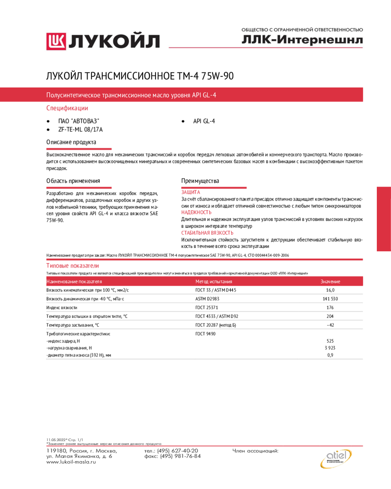 Лукойл Трансмиссионное масло Лукойл ТМ-4 полусинтетическое SAE 75W-90
