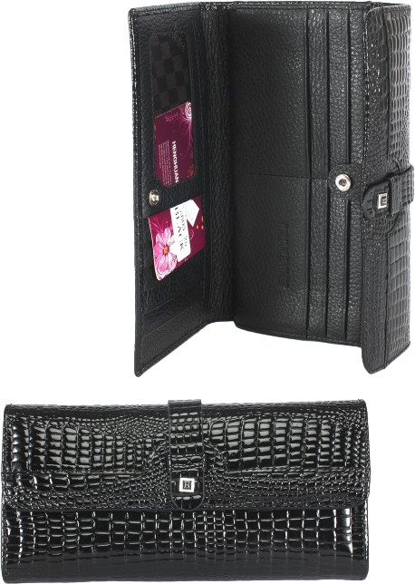 Взяла маме в подарок. Кошелек огромен, как клатч, множество отделов и кармашков, все как она любит. Лаковое покрытие, гламурненький такой... Конечно, кожа сейчас не та, но таки лучше кожзама. Надеюсь, будет служить долго.