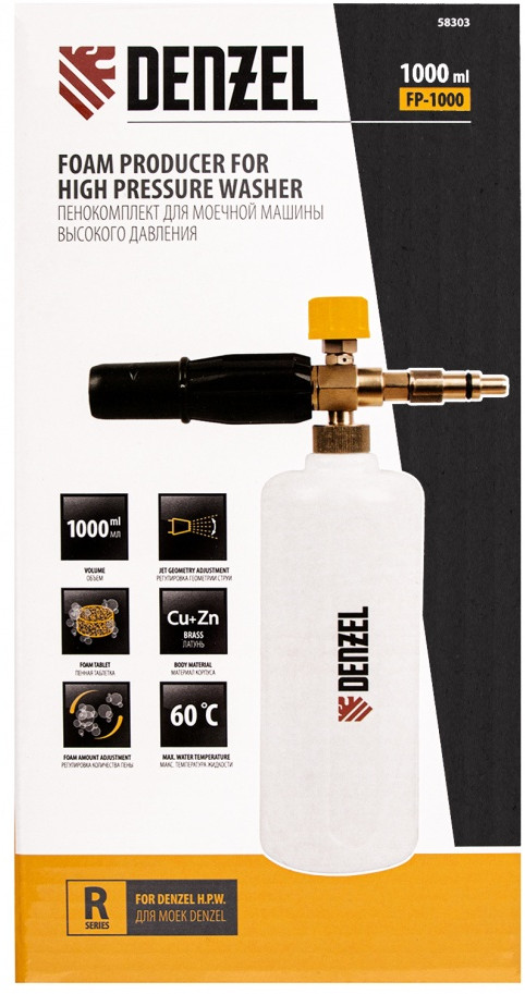 💳 Оплатить за товар можно при получении 🇰🇿 Есть бесплатная доставка по Казахстану от 1 дня 🎁 Копите бонусы с каждой покупки Пенокомплект для моечных машин высокого давления Denzel FPB-1000 из латуни предназначен для нанесения пенного раствора на кузов автомобиля и другие поверхности. Он устанавливается на моечные машины высокого давления Denzel R-серии. |