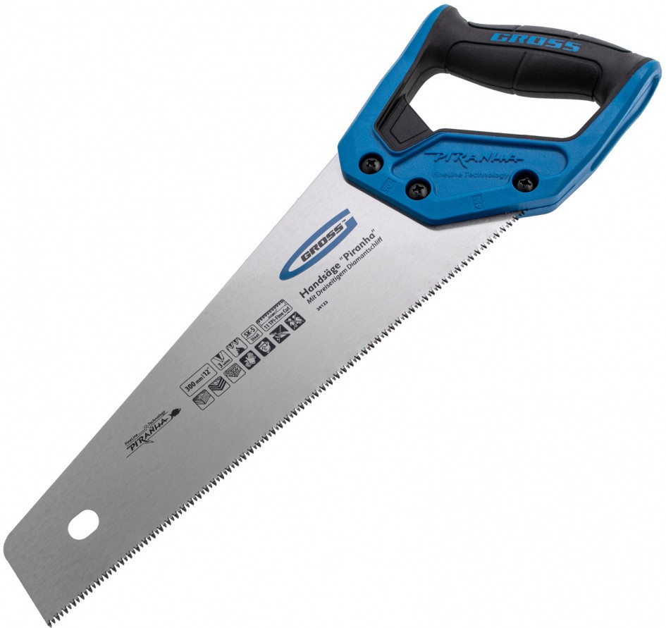 • двухкомпонентная рукоятка выполнена из ударопрочного ABS-пластика, что повышает надежность ножовки;