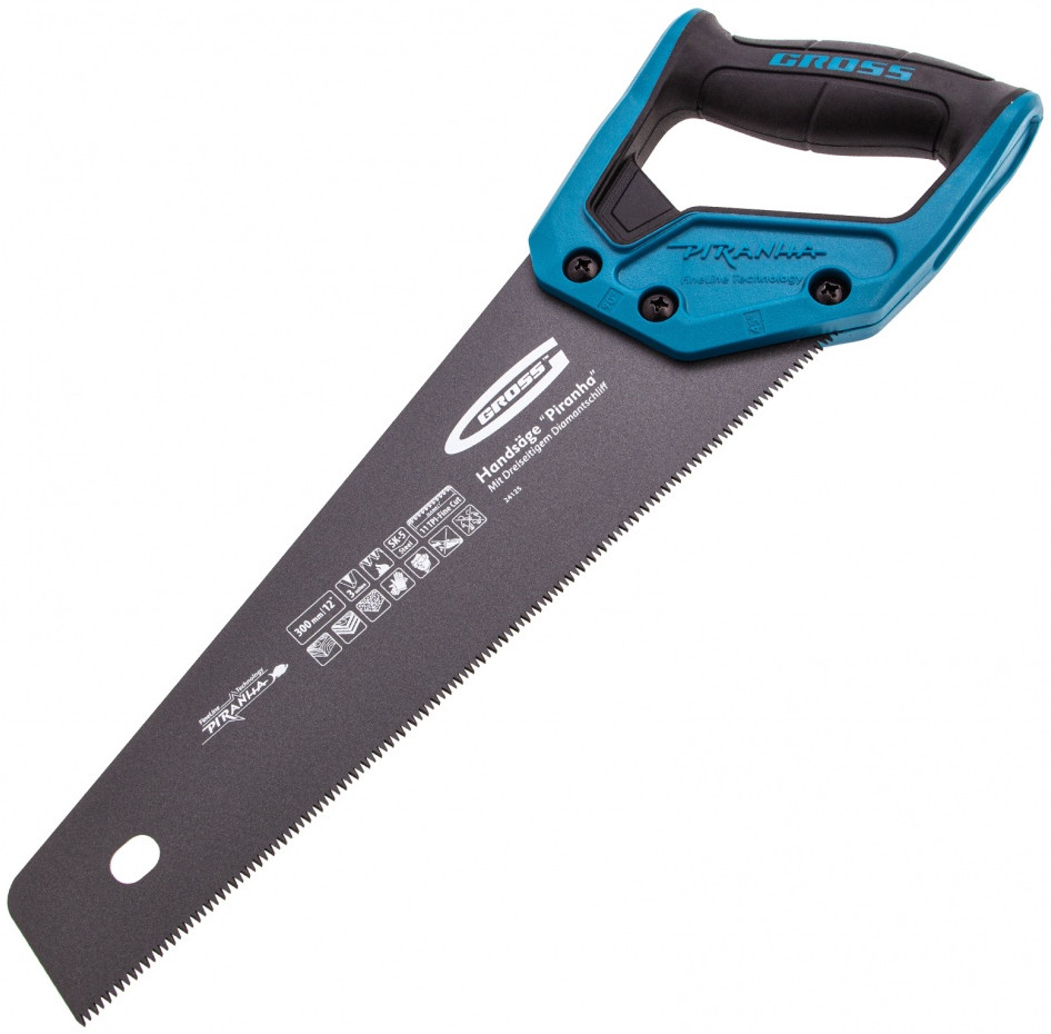 Ножовка по дереву Gross используется для продольного и поперечного распиливания древесины различных пород, МДФ, ДСП, ДВП, ламината, а также пенополистирола, полиуретана и других синтетических материалов. Рабочая часть состоит из мелких зубьев с шагом 2-2,3 мм, что позволяет получить ровный и чистый рез. Трехгранная заточка зубьев увеличивает производительность инструмента без потери качества распиловки. Ножовка предназначена для столярных работ.