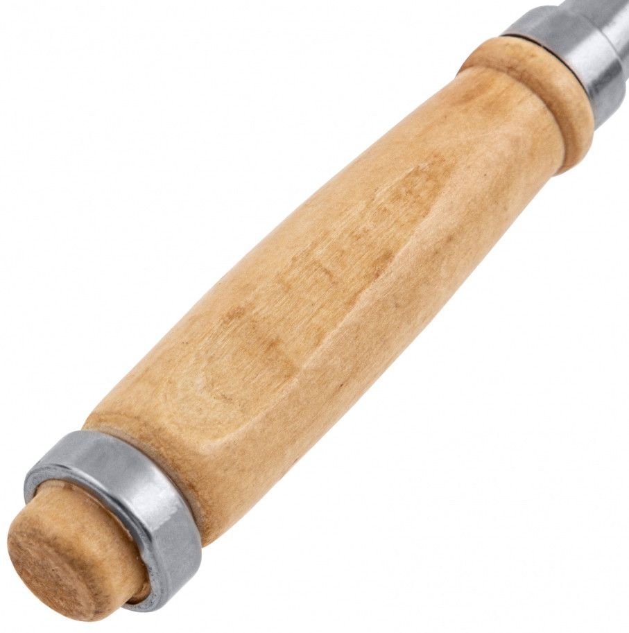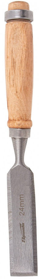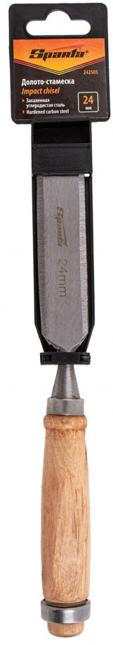 Плоское долото-стамеска с деревянной рукояткой предназначено для столярных и плотничных работ- выборка и зачистка небольших прямоугольных пазов, снятия фасок в натуральной древесине любой твердости.Полотно стамески выполнено из конструкционной стали 45 и острозаточена. Твердость инструмента составляет 45-55 HRC. Рукоятка имеет защитное лакокрасочное покрытие и оборудована металлическим кольцом с тыльной стороны, которое предотвращает раскол дерева при ударах молотком или киянкой.