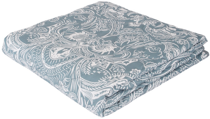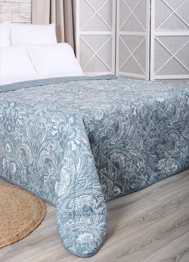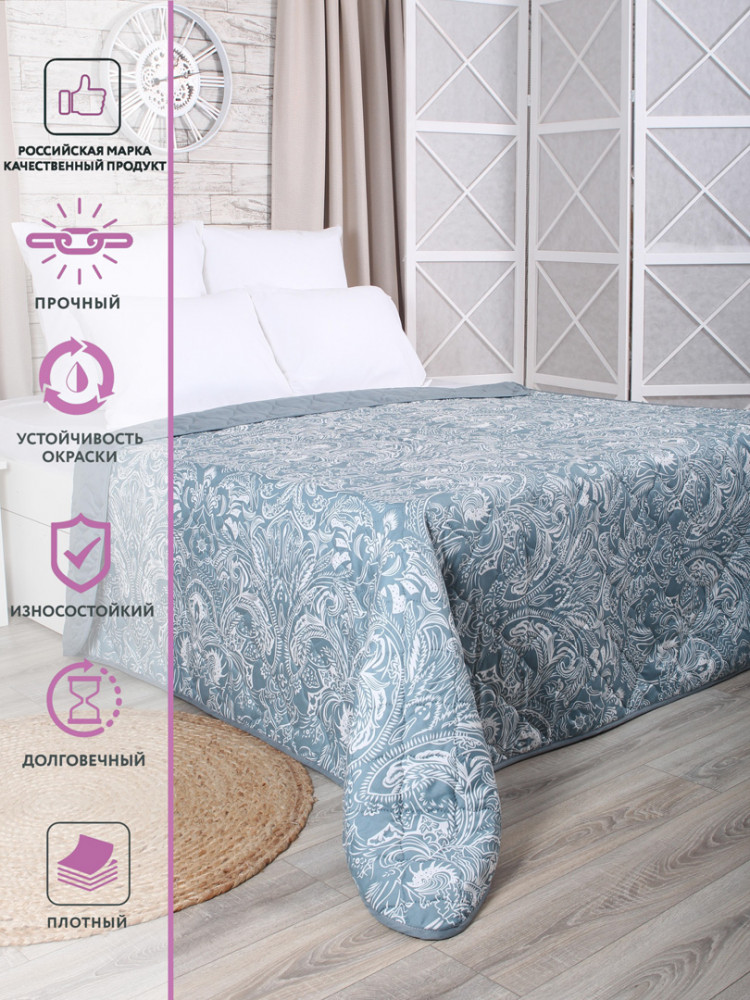 Приятно удивил полученный товар. Отменное качество, всё аккуратно прошито, стирается легко, выглядит на кровати красиво. Цвет подкачал, ожидала более металлического оттенка, а в итоге отдает синевой.
