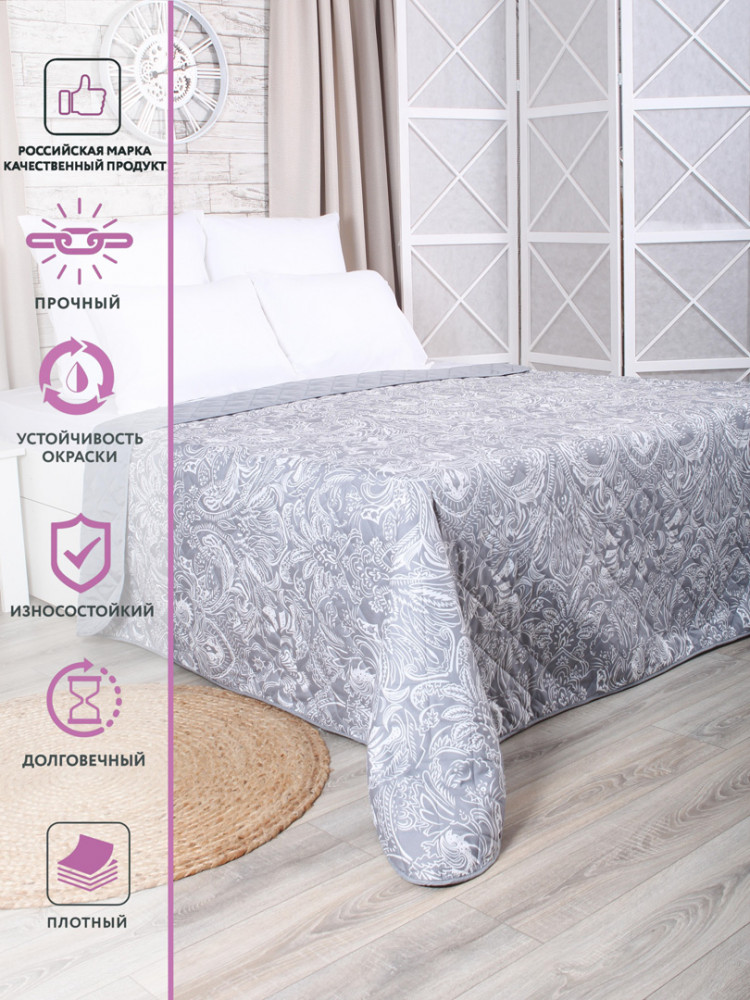 Приятно удивил полученный товар. Отменное качество, всё аккуратно прошито, стирается легко, выглядит на кровати красиво. Цвет подкачал, ожидала более металлического оттенка, а в итоге отдает синевой.