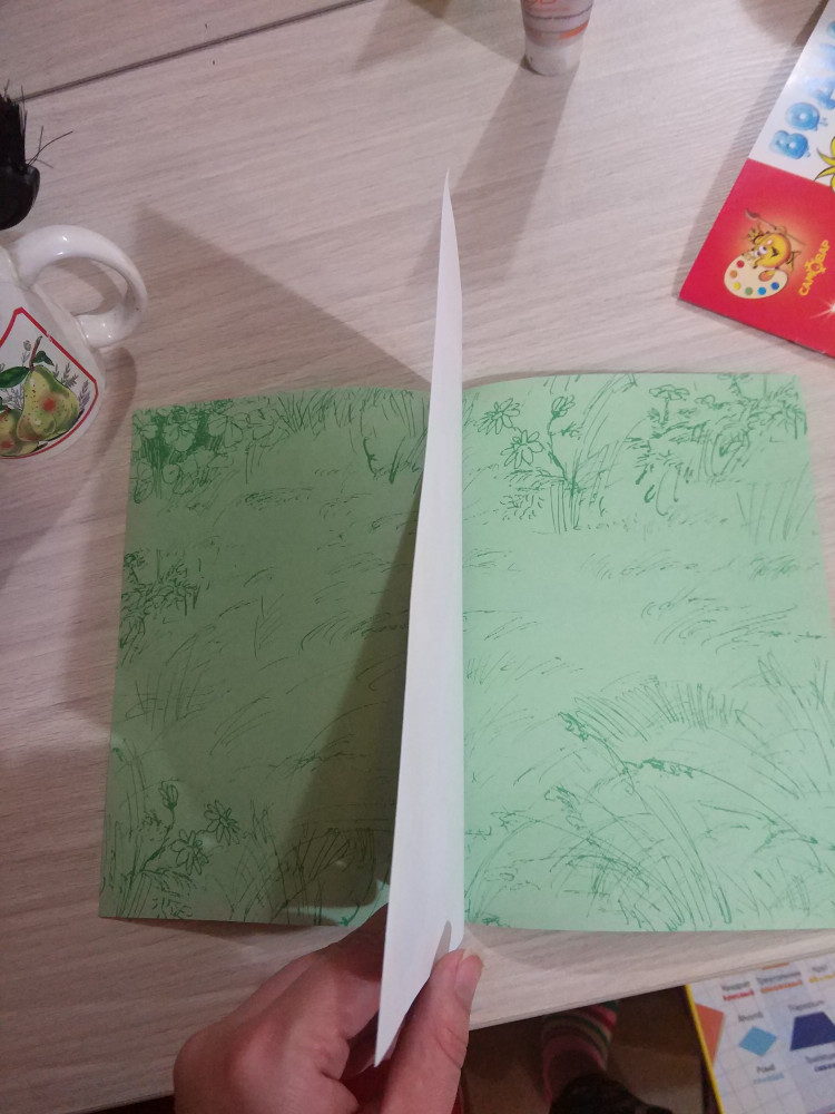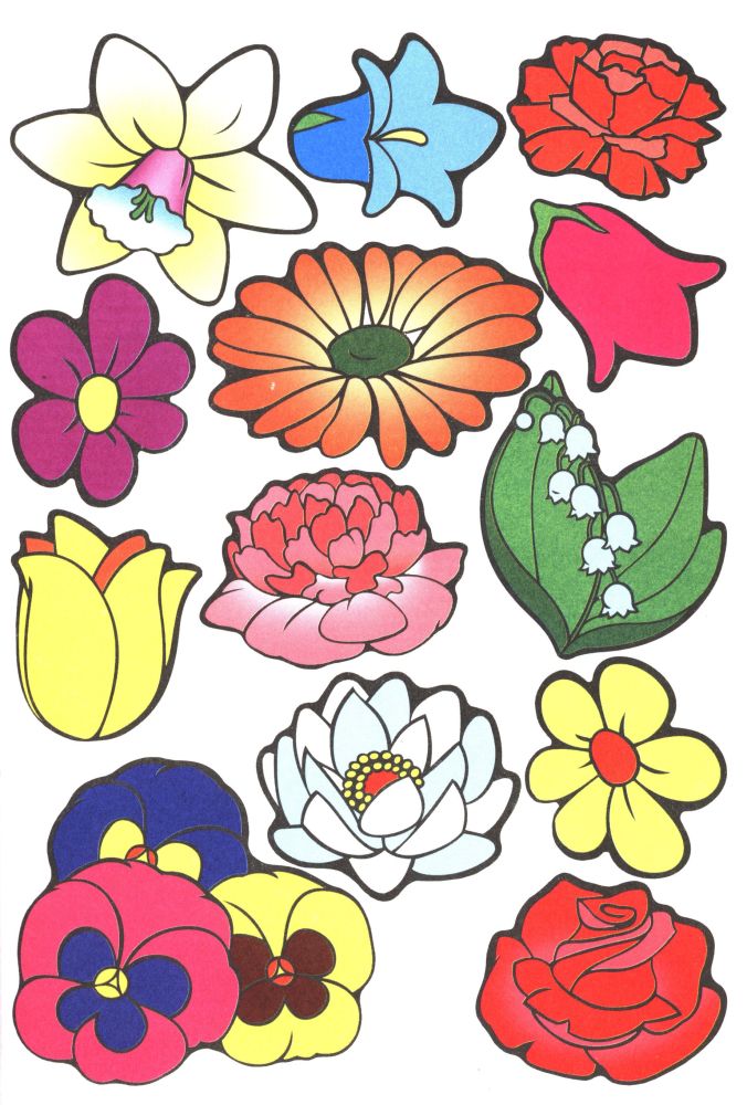 Книжка очень тонкая, всего два листа — обложка и лист для вырезания. Лист лучше не отрывать, а аккуратно разогнуть скрепки. Зато внутренний фон обложки цветной, разрисованный — зелёная лужайка с травкой. Если наклеить на картонку, получится небольшая картина. Персонажи: разные цветы (в отличие от других книжек серии, без личиков). Определённого места для наклеивания не предусмотрено, можно размещать персонажей произвольно. Форма фигур несложная, можно вырезать ровно по контуру.