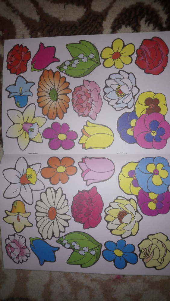 Отличный вариант аппликации, бумага плотная, рисунки яркие, цветочков много и они разнообразные, еще и названия цветов с детьми изучить/повторить можно. Так что, это не только развитие мелкой моторики, но и познавательный, развивающий материал за очень дешёвую цену!!! Спасибо, Флип!