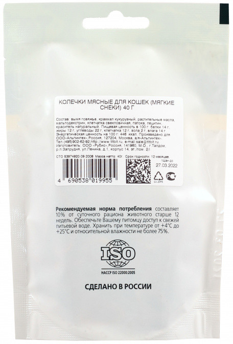 TiTBiT Снеки для кошек «Колечки мясные»В данный момент этот товар отсутствует в продаже. Возможно, у нас найдется аналогичный или похожий товар здесь. Серия: Лакомый кусочек Условия хранения товара: температурный режим от -10 до +25°С. |