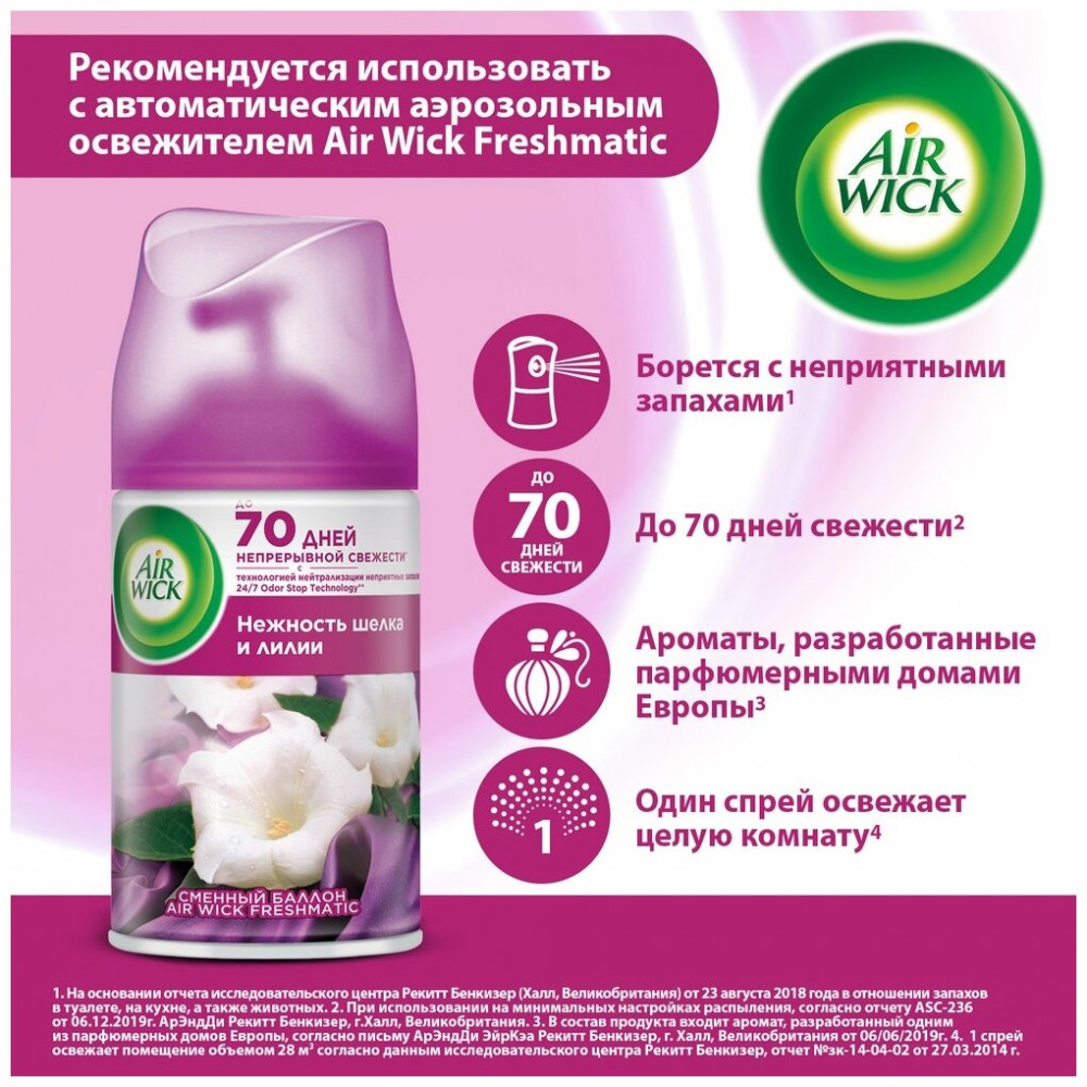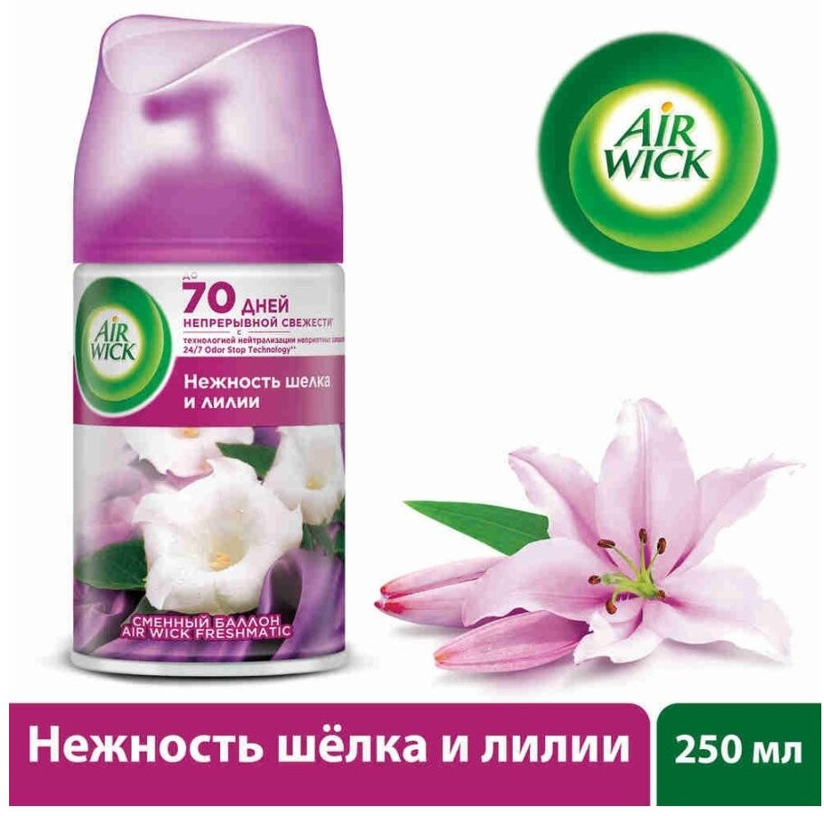 Air Wick Баллон сменный к автоматическому распылителю «Нежность шелка и лилии»
