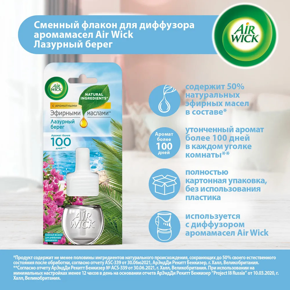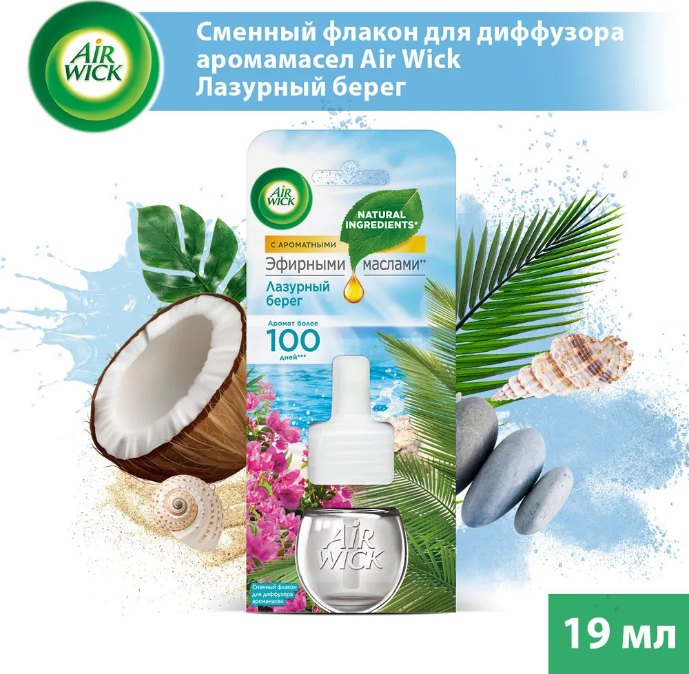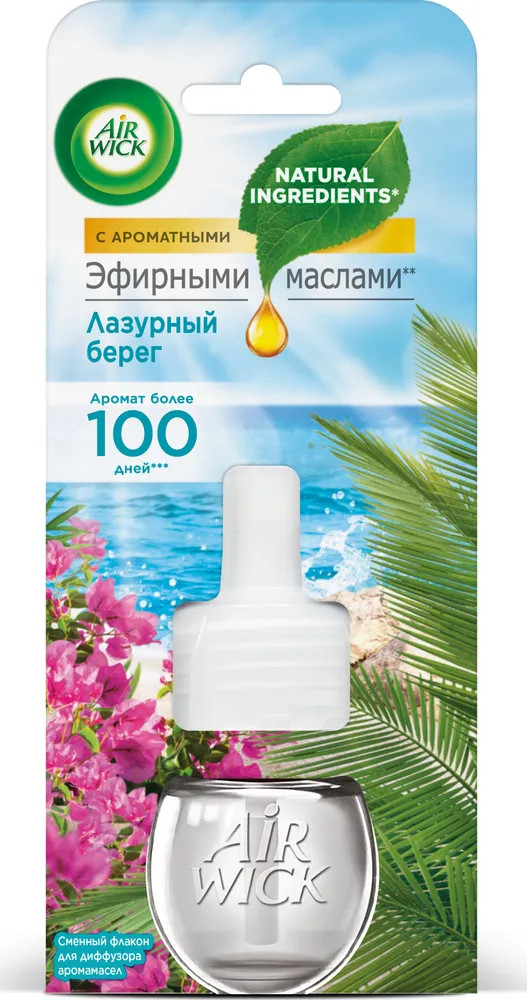 Сменный флакон к диффузору аромамасел «Air wick» наполнит Ваш дом ароматом, вдохновленным самой природой, который длится день за днем. Погрузитесь в атмосферу лазурного берега у себя дома вместе с «Air Wick»!