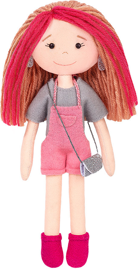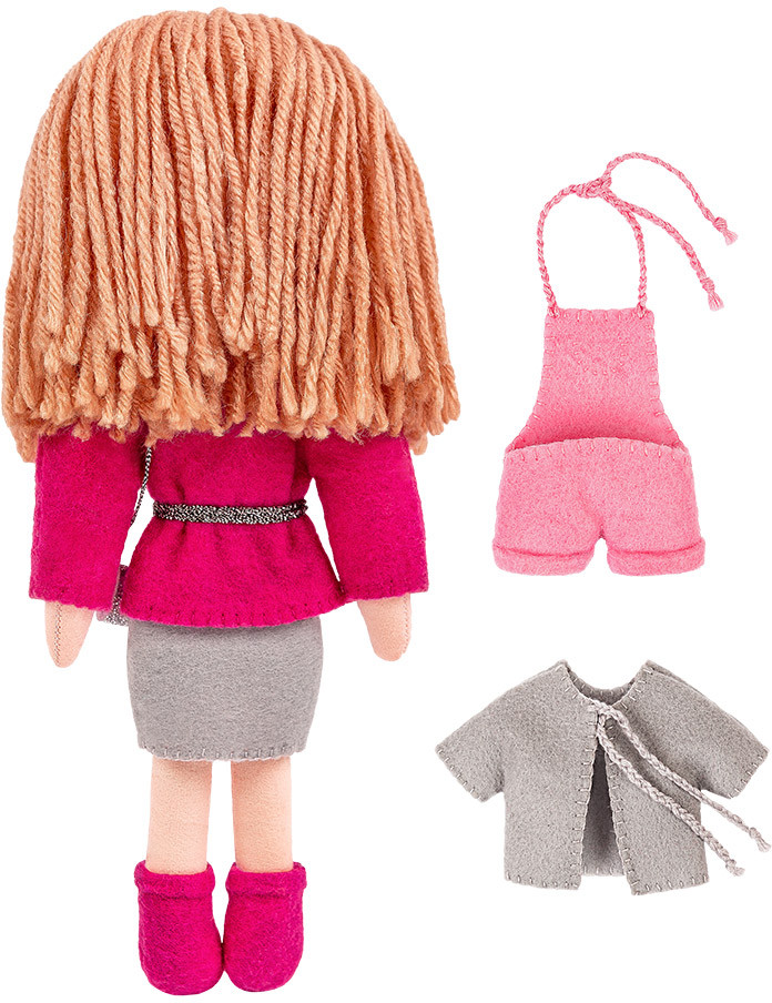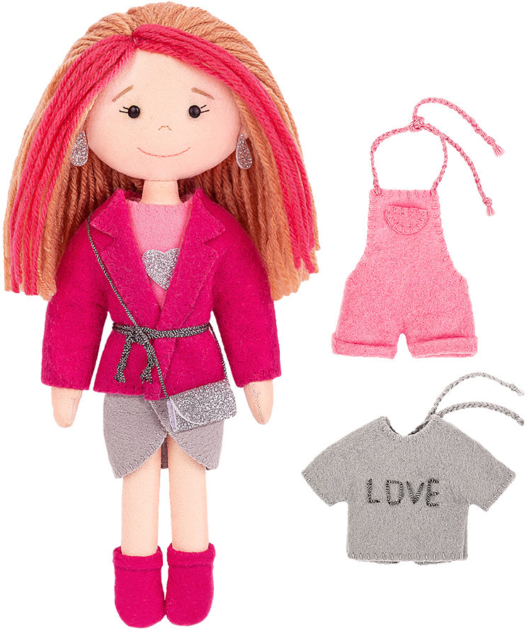 В набор входят все необходимые материалы для изготовления игрушки, кроме наполнителя: брадсы, мулине «Gamma», фетр, фетр с блестками, пряжа, игла, выкройка и подробная пошаговая инструкция с картинками.