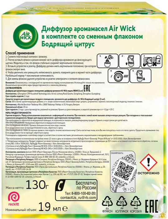 Air Wick Диффузор аромамасел «Бодрящий цитрус»