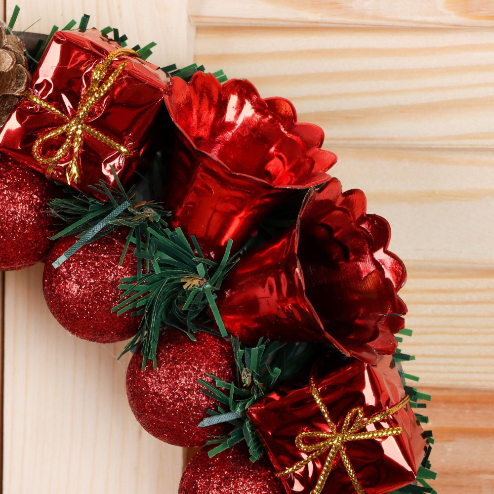 Зимнее волшебство Венок новогодний «Красные шарики, колокольчики, подарки»-25% +31