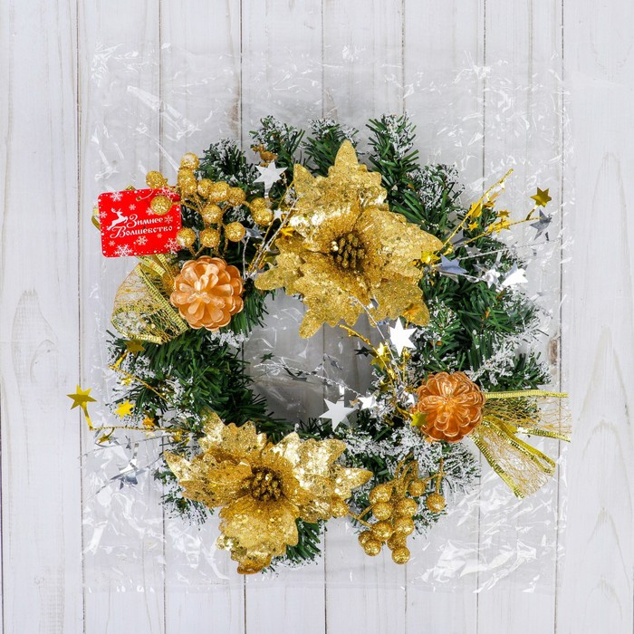 Зимнее волшебство Венок новогодний «Цветы и шишки»-30% +36