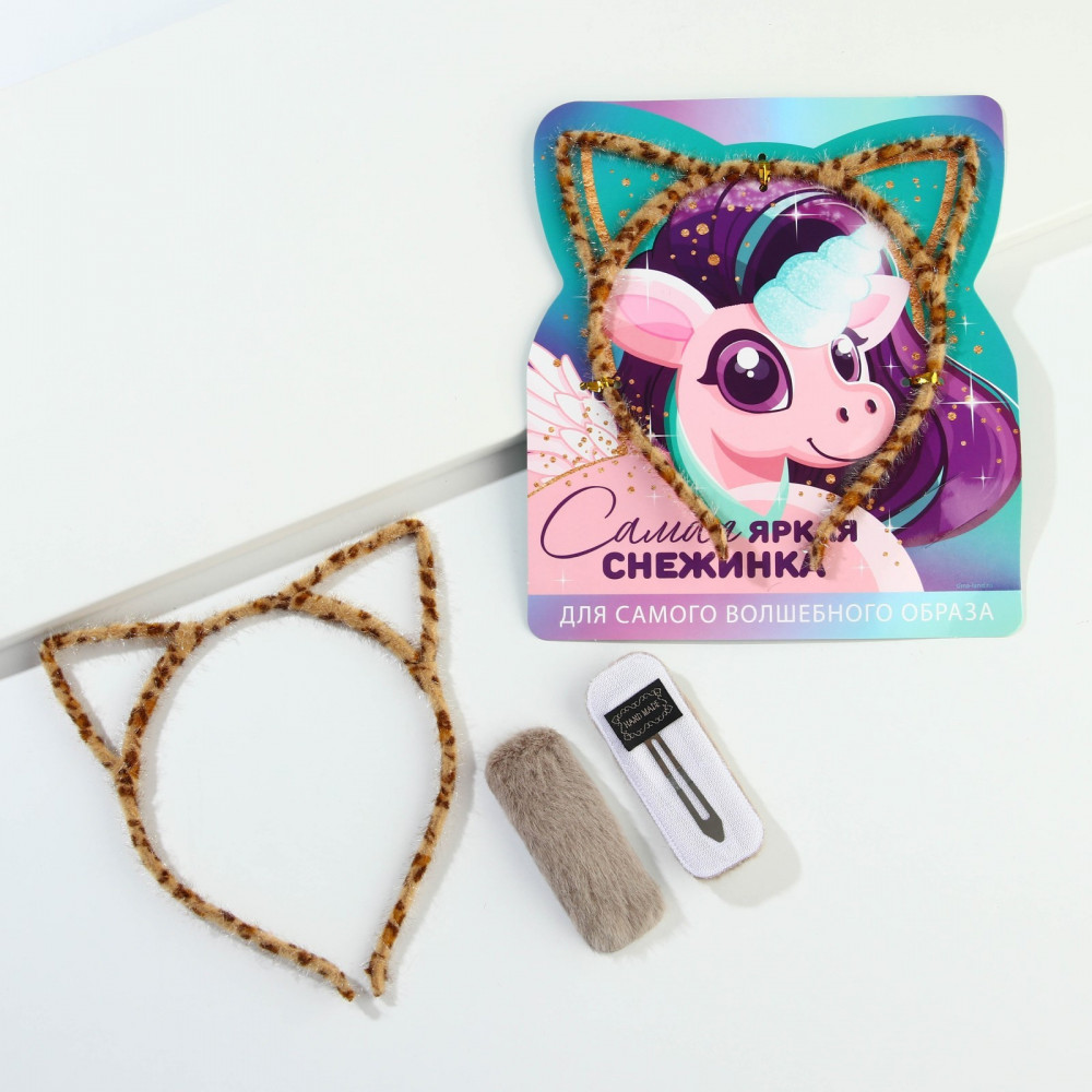 Подарочный набор ободок с ушками и пушистая заколка для волос. Праздничный ободок может стать хорошим подарком подруге, сестренке или другому близкому человеку. Карнавальный ободок имеет универсальный размер, поэтому подойдет как для детей 12-15 лет, так и для взрослых девушек. Заколка клик-клак для волос дополнит новогоднюю прическу, она отлично держит волосы.