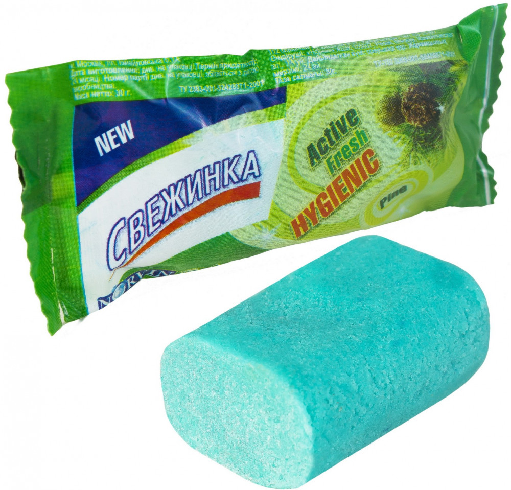 Все блоки этой серии и похожие без запаха, но...пенится и не дает садится никакому налету, унитаз чистый. К этому блоку добавляю еще таблетку хлора.
