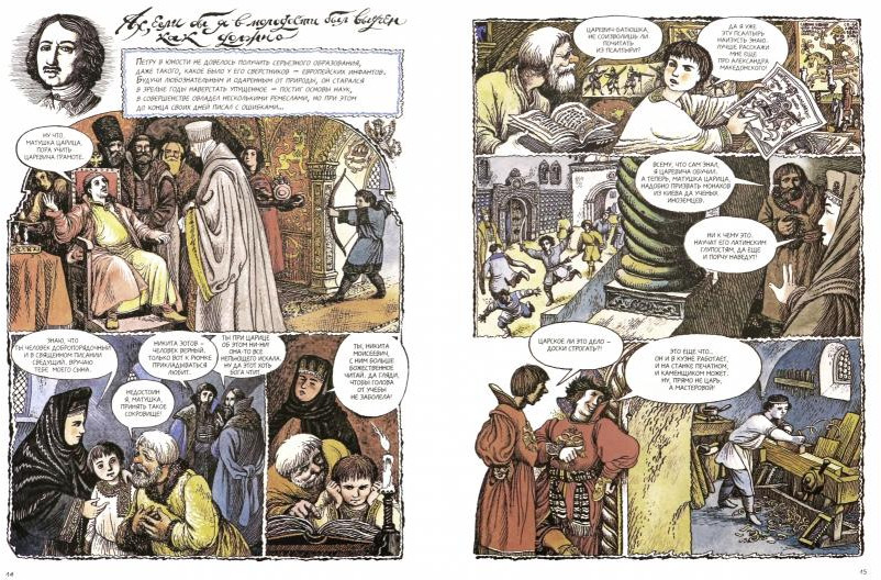 Пётр ВеликийВ данный момент этот товар отсутствует в продаже. Возможно, у нас найдется аналогичный или похожий товар здесь. История, графические романы, комиксы. Для взрослых. Авторы обратились к одной из самых интригующих страниц отечественной истории — эпохе правления Петра I — в жанре комикса. Комикс предполагает приоритет изображения перед словом, но в этом случае авторы добились их органического единства. Рисунки И. Вышинского, полные достоверных исторических деталей, выполненные с безупречным мастерством, дополнены столь же точными и остроумными текстами Б. Каражаева. В шести главах книги читатель найдет лаконичное изложение ключевых эпизодов Петровской эпохи, встретит множество исторических персонажей, каждый из которых предстает здесь не в качестве статиста, а как полноценный образ со своим характером и судьбой. Все это делает издание не только увлекательным. Но и познавательным чтением. |