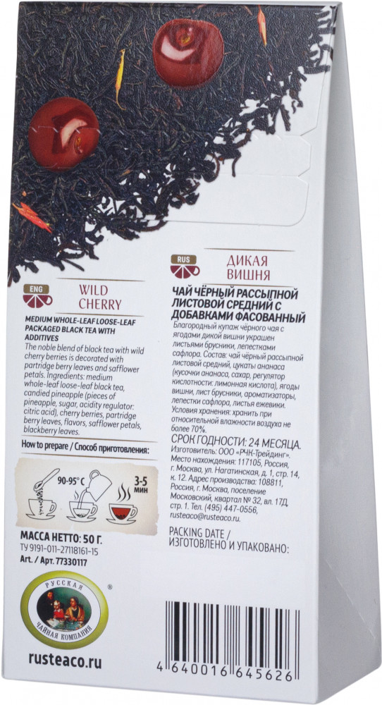 FruTea Чай черный «Дикая вишня»В данный момент этот товар отсутствует в продаже. Возможно, у нас найдется аналогичный или похожий товар здесь. Благородный купаж чёрного чая с ягодами дикой вишни украшен листьями брусники, лепестками сафлора. |