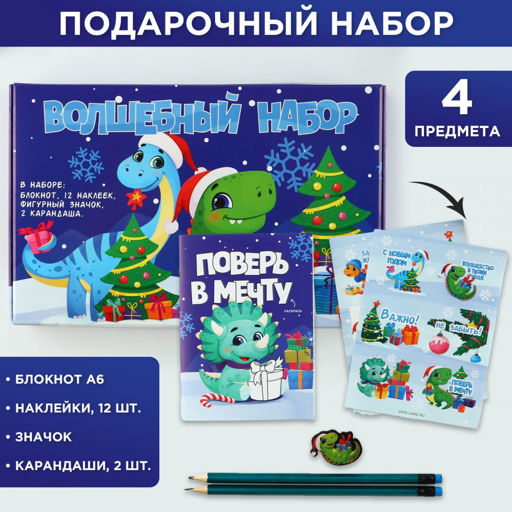 ArtFox Набор подарочный «Волшебный»В данный момент этот товар отсутствует в продаже. Возможно, у нас найдется аналогичный или похожий товар здесь. Серия: Dino Christmas Детский подарочный набор включает в себя небольшой блокнот, наклейки, значок и два простых карандаша. Небольшой подарок, который привнесет частичку праздника и хорошее настроение. |