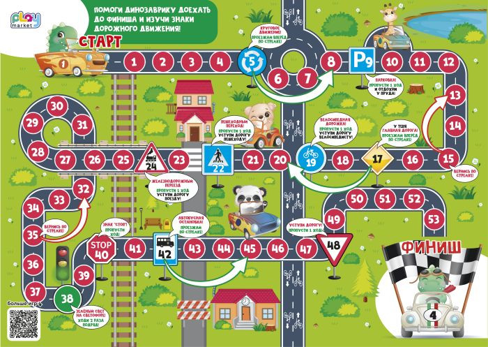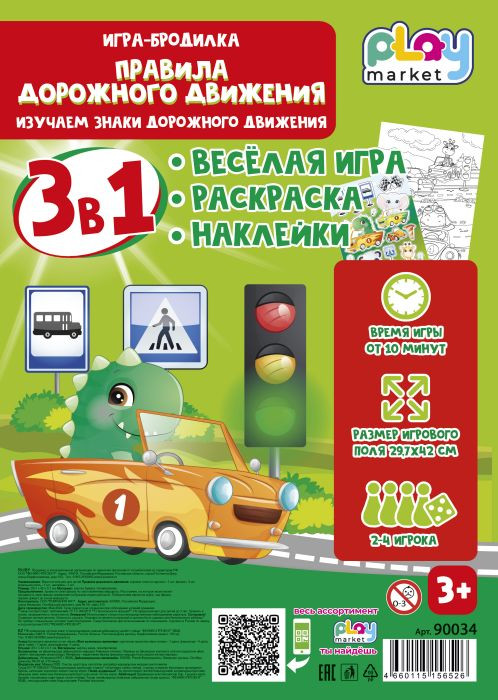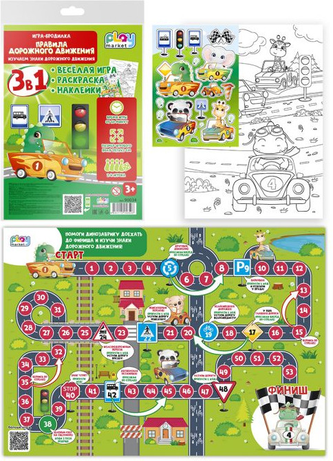 Игра-бродилка «Правила дорожного движения» увлекательно и понятно расскажет о знаках дорожного движения, а веселая раскраска и яркие наклейки с героями игры помогут лучше запомнить новую информацию.