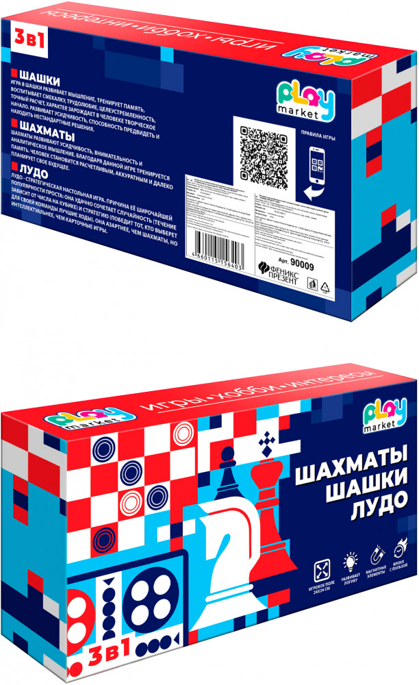 Феникс Презент Набор игр настольных «Шахматы, шашки, лудо»-20% +111